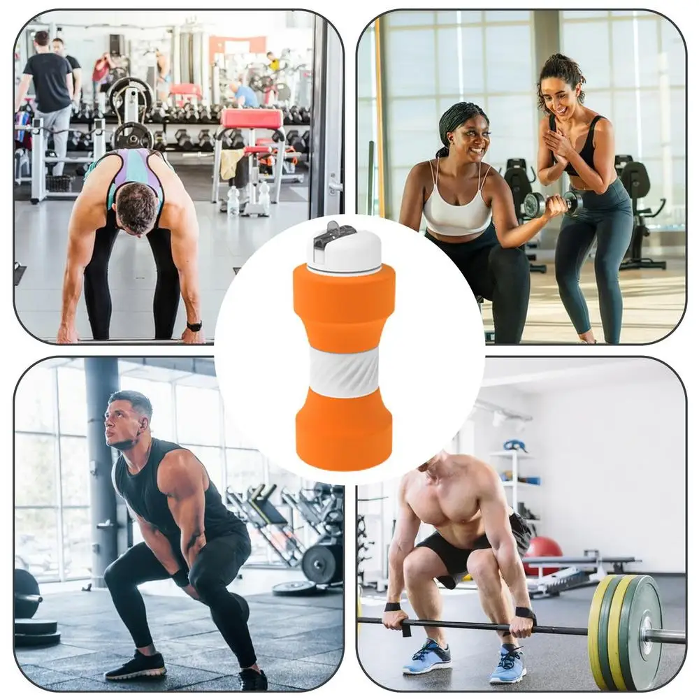 4.Foldable design: Thanks to its compact appearance and foldable design, this dumbbell-shaped water cup can be placed in any backpack, handbag, fitness bag, pocket, etc.